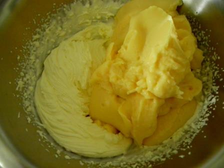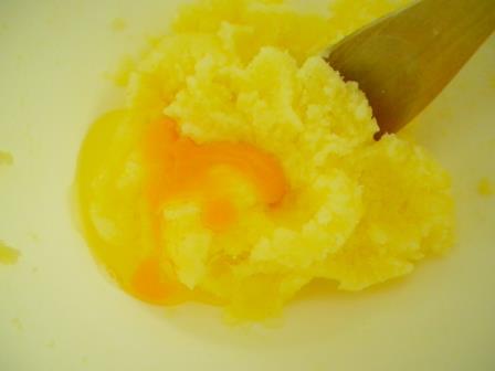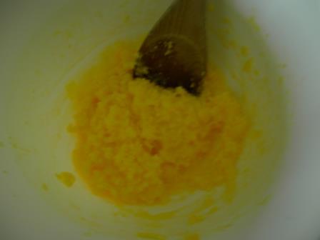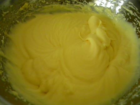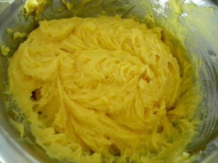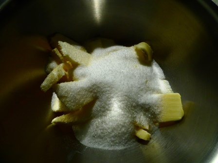 In a large bowl pour the butter and sugar and mix well until you have a smooth paste.