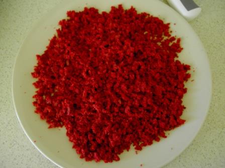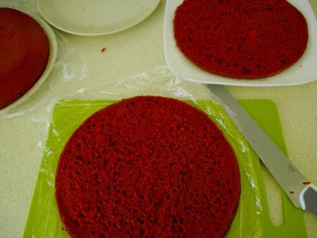Divide everything into the two prepared pans and bake for about 30 minutes at 160 ° C, preheated oven (after about 20 minutes of cooking control your cakes, because have to keep a bright red color without darkening!). Before fill the cakes, they will rest for a few minutes in their baking mold, then on a wire rack.