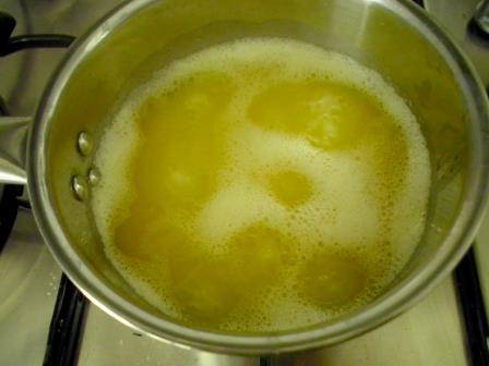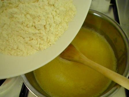 Add the eggs with a pinch of salt and, with a hand mixer, beat until they’re completely absorbed.