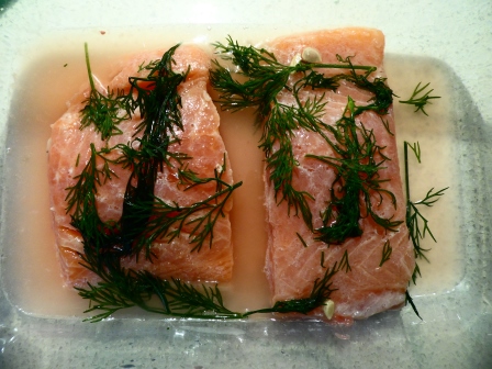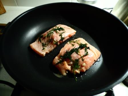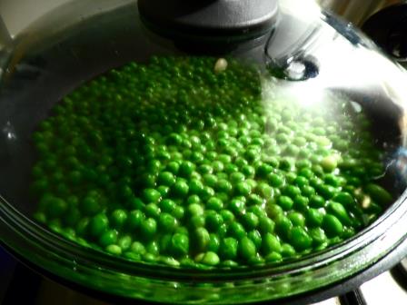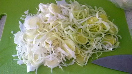In a large fry-pan heat one or two cloves of garlic to taste with a little oil, which must be sufficient to cook everything (5-6tbsp should be enough).