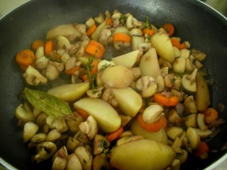Durante la cottura, sia delle verdure che di tutti gli altri ingredienti, mescolare di tanto in tanto con un cucchiaio di legno molto delicatamente, per evitare che le patate si rompano o si schiaccino.